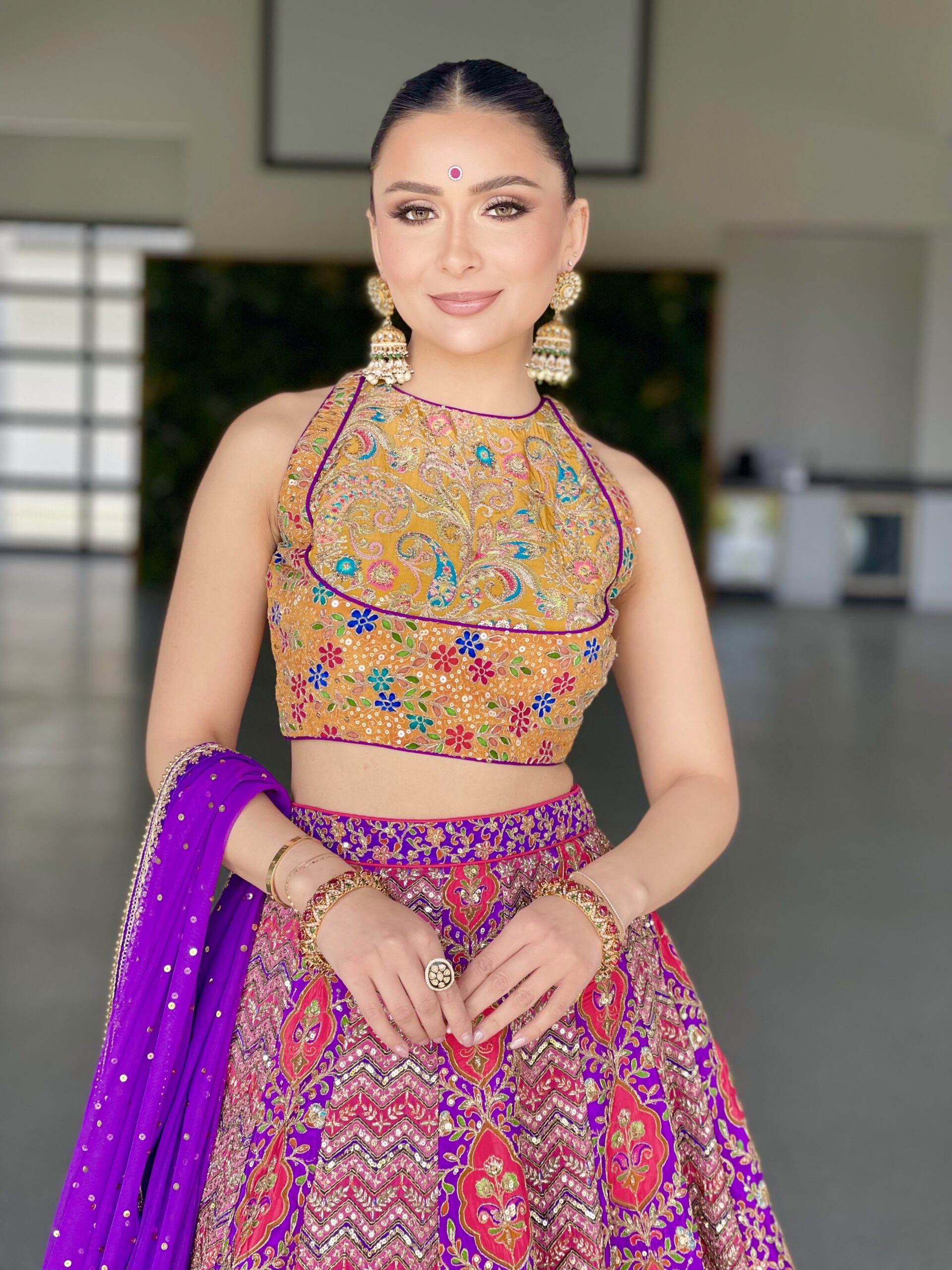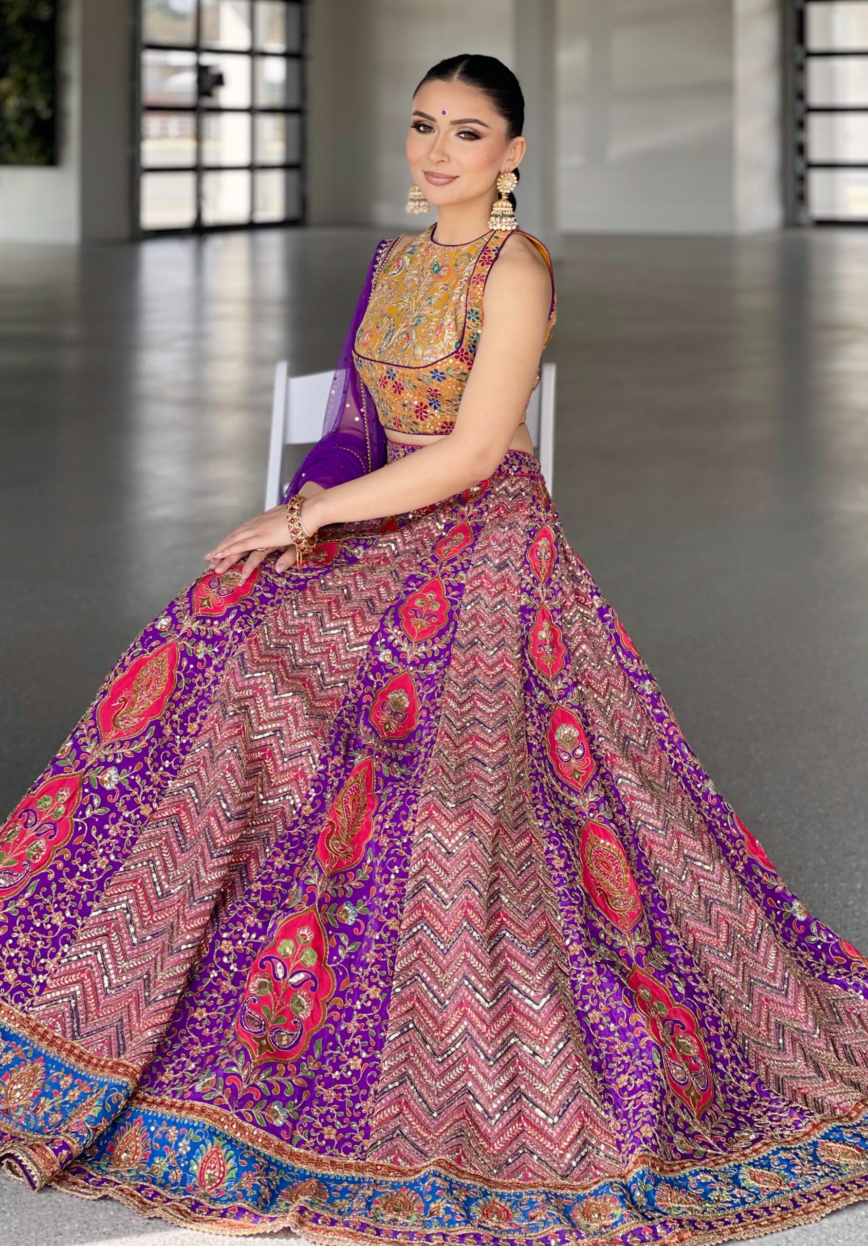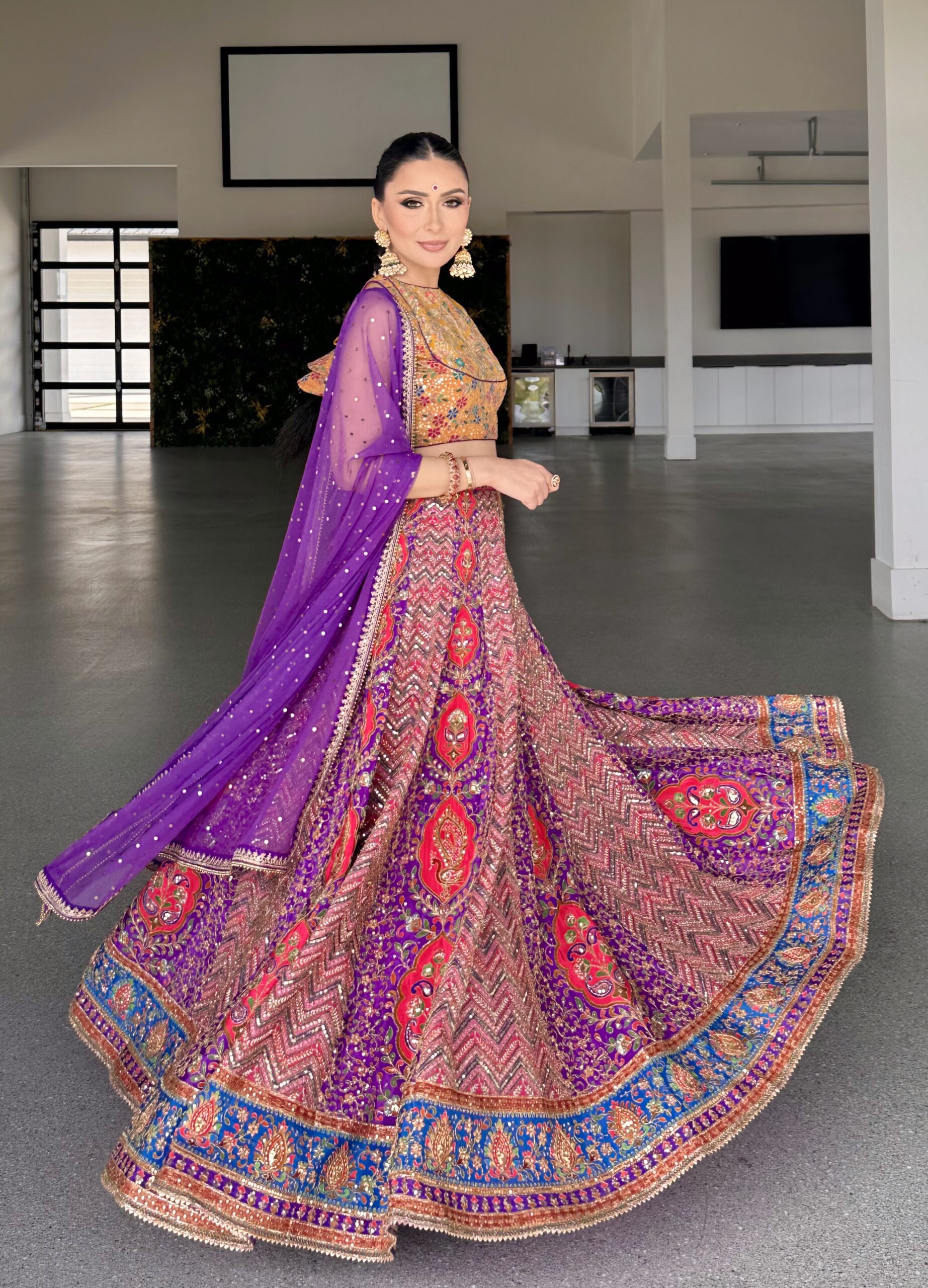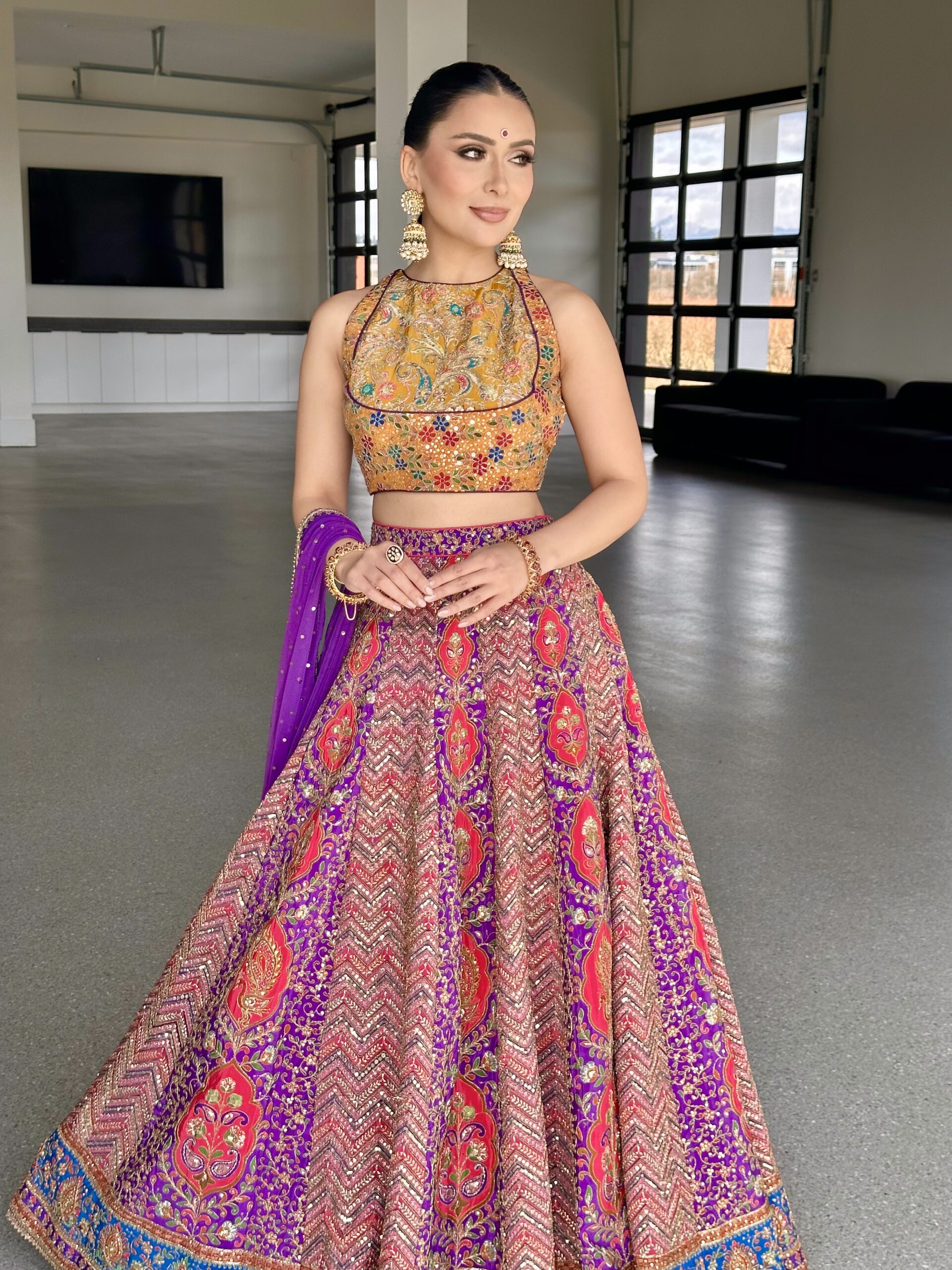 Lehenga • Embroidered printed crepe fabric.