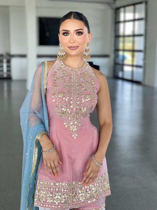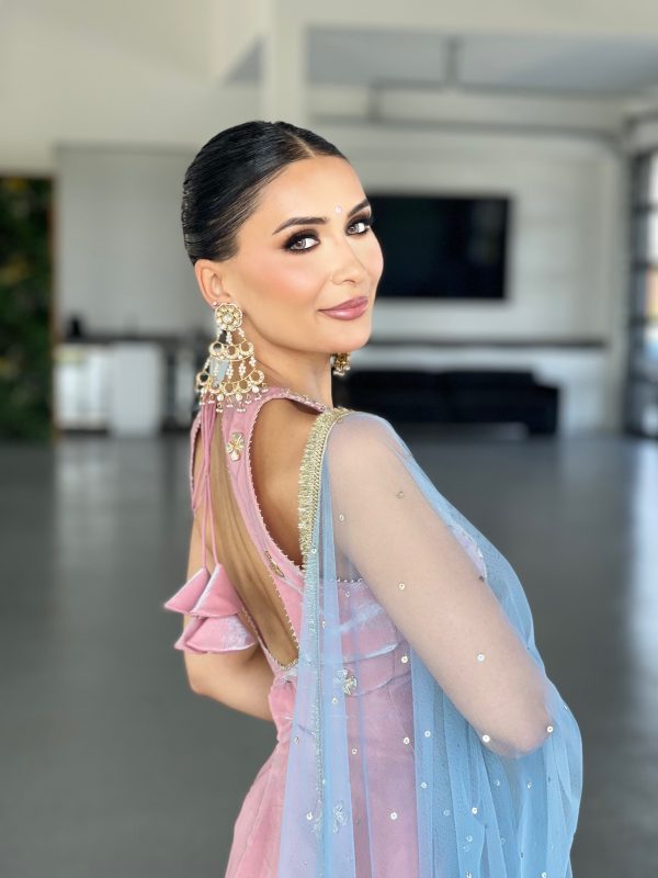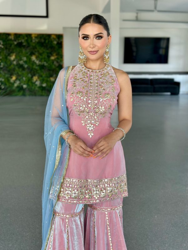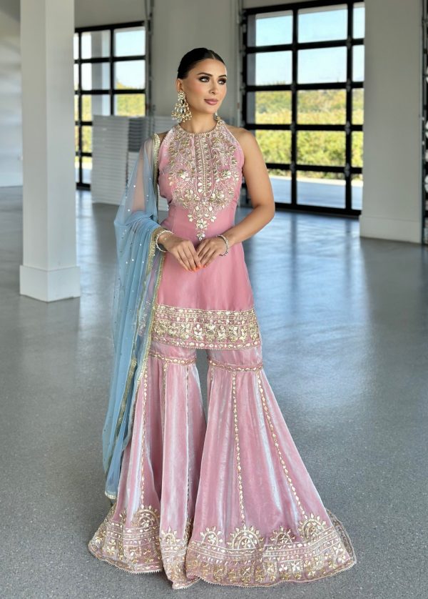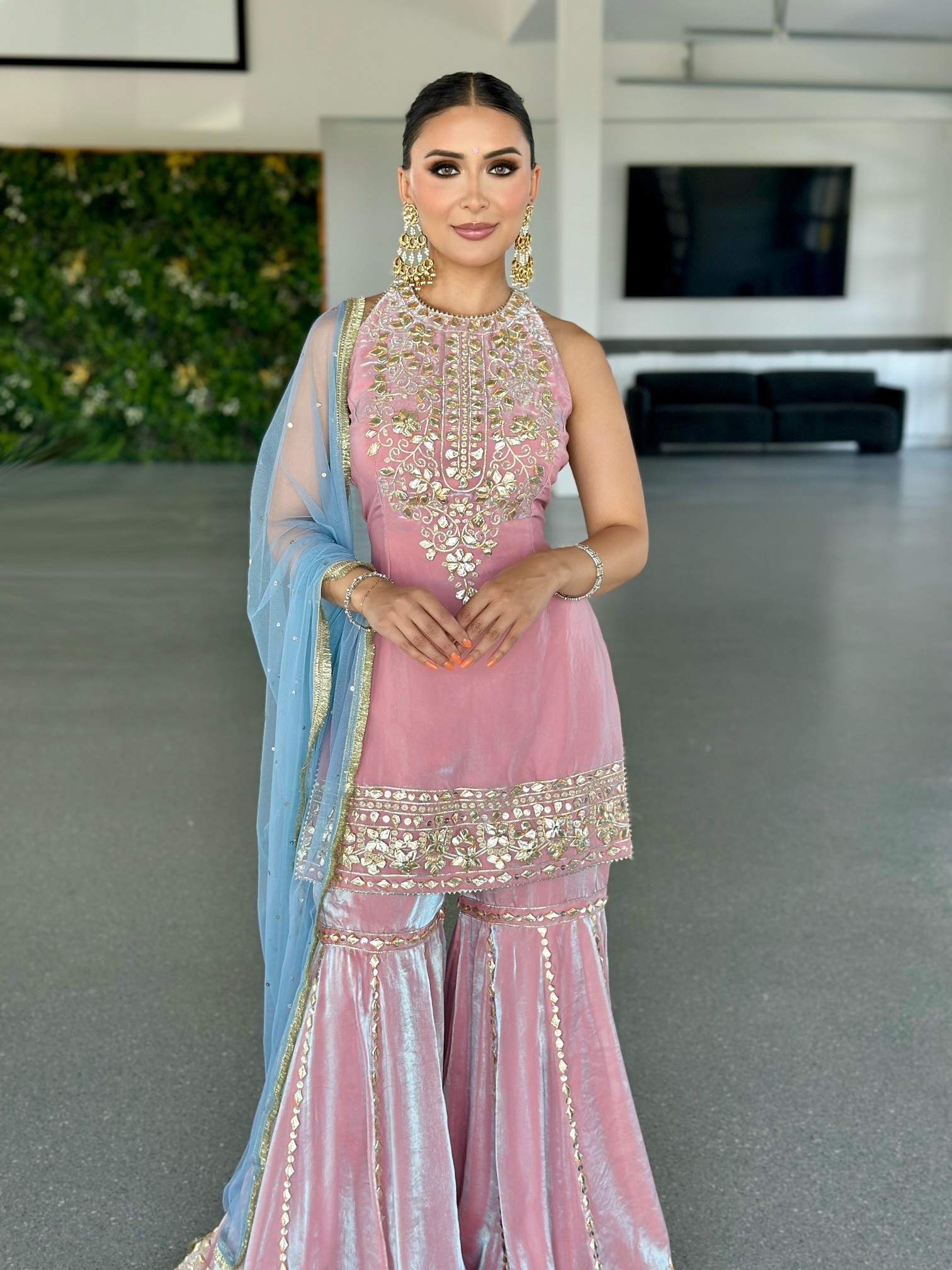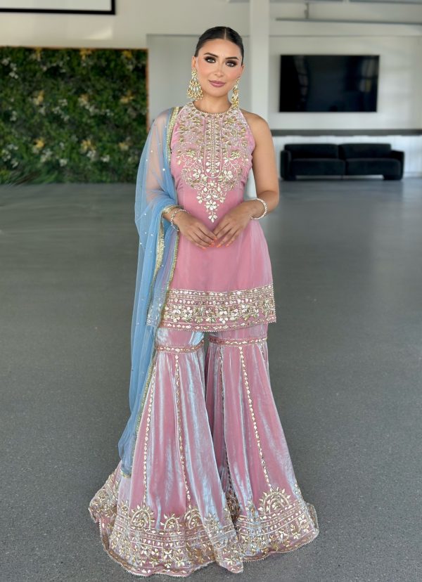 Kameez and Sharara • Gotha embroidery on a two tone shimmer georgette.