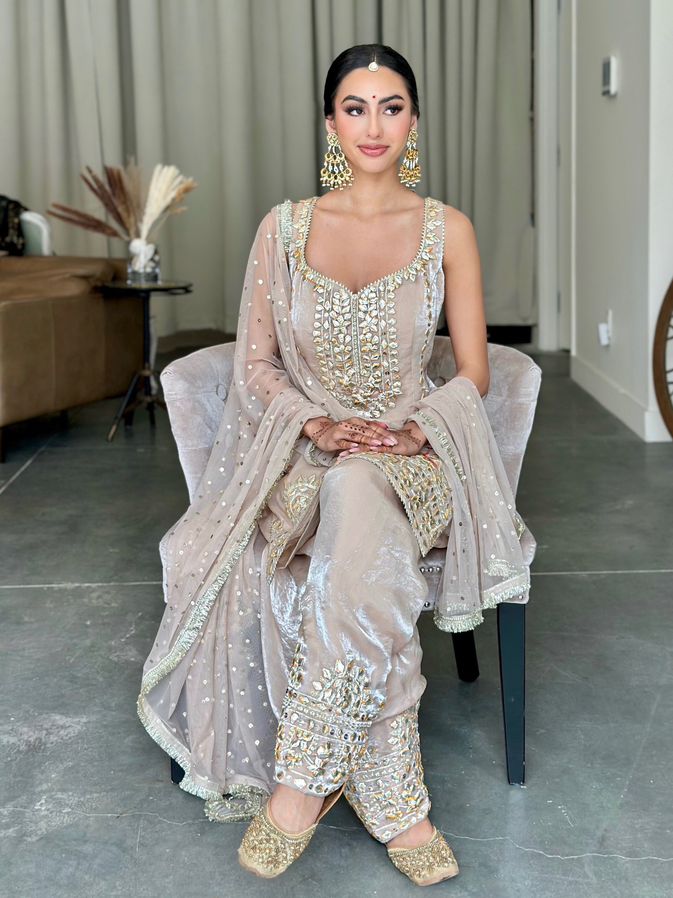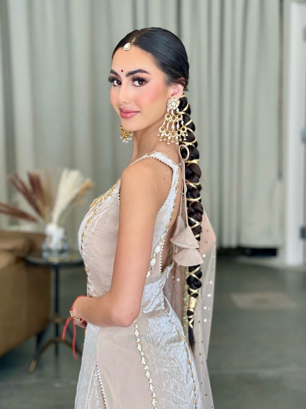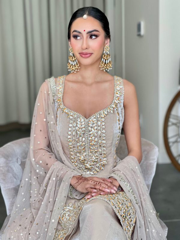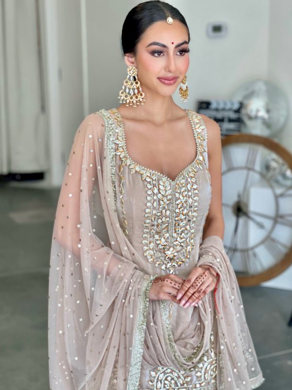 Kameez • Shimmer crush georgette with gotha embroidery.