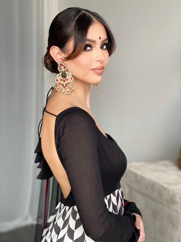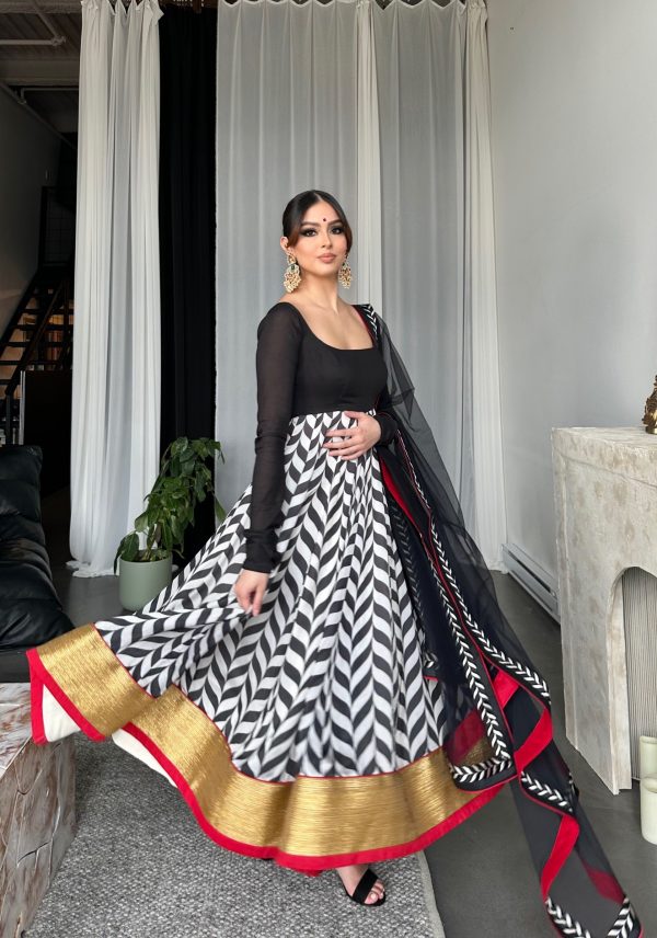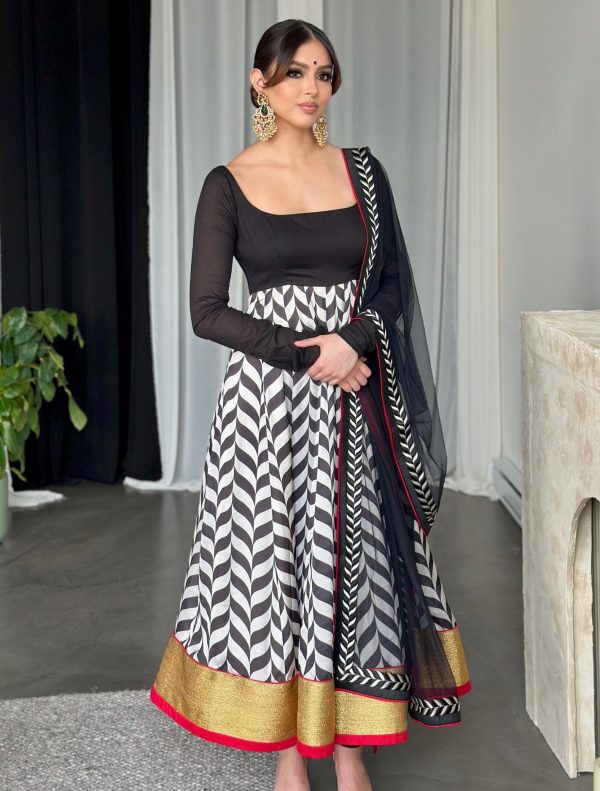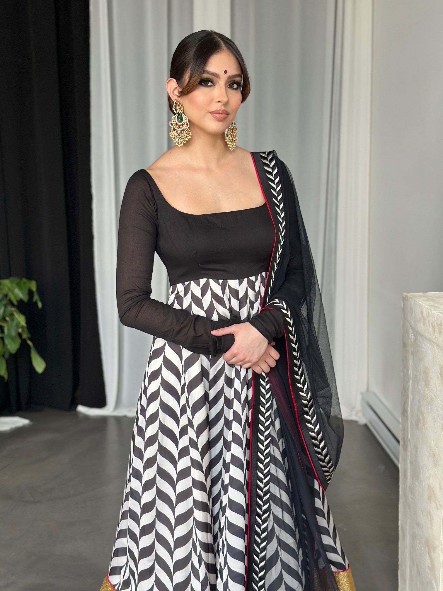 Anarkali • Mulmul youk, chiffon like fabric on bottom, and churidaar sleeves.