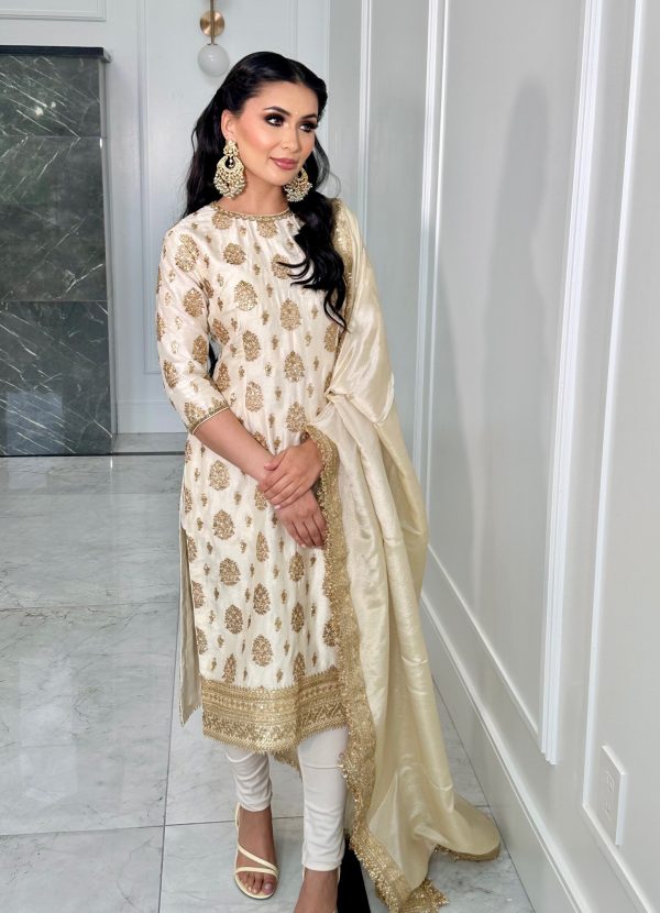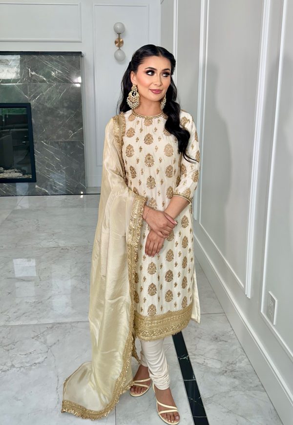 Kameez • Dupian with sequins and gold thread booti.