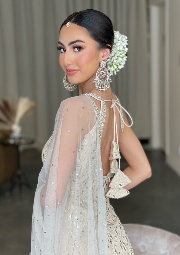 Duppatta • Soft sequins net, finished with stone and pearl border.